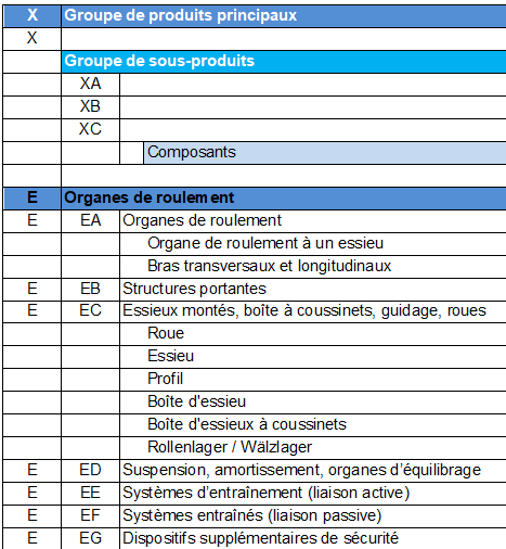 . 2 sous-groupes de produits (par ex. essieux, suspension, etc.)..